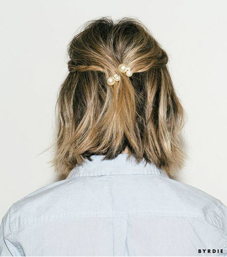 Accessoires sind eine großartige Möglichkeit, jede Frisur aufzupeppen, unabhängig von der Haarlänge. Das Hinzufügen eines einfachen Accessoires bringt eine einfache Frisur sofort auf die nächste Stufe. Fangen Sie an, coole und lustige Haarnadeln, Haarnadeln, Haargummis, Schleifen, Bänder und Broschen zu sammeln. Auf diese Weise stehen sie Ihnen jederzeit zur Verfügung, wenn Sie sie verwenden möchten. Hier sind einige interessante Beispiele auf dem Foto unten: