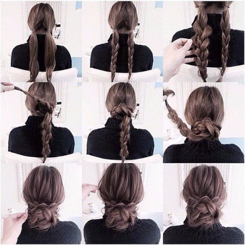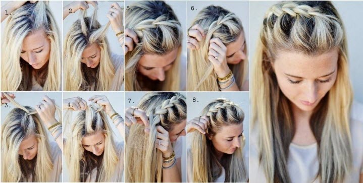 Eine kreative, originelle und praktische Frisur für jeden Tag. Entlang des Haaransatzes können Sie Ihr Haar ein wenig kämmen, um Volumen zu erzeugen, dann nehmen wir eine Haarsträhne und fixieren sie mit einem Gummiband usw Fahrlässigkeit.