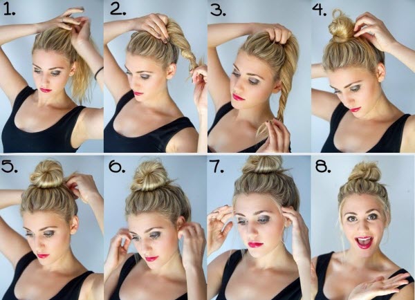Jetzt auf dem Höhepunkt der Popularität ist die Frisur ein Knoten für loses Haar oder Hunne. Für diese Frisurenvariante braucht man nur ein Gummiband und ein paar Haarnadeln, außerdem zeichnet sich diese Frisur durch etwas Unachtsamkeit aus, man kann ein paar Strähnen so lassen, dass sie ums Gesicht fallen, man kann auch für mehr die Haare etwas kämmen Volumen.