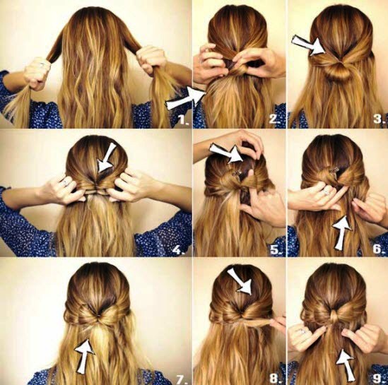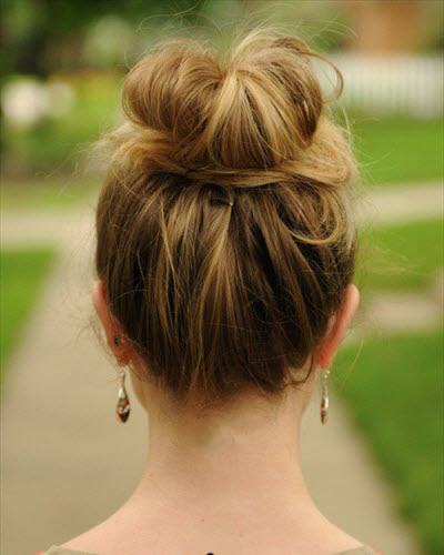 Die beliebteste Frisur von vielen: Haare anheben, zu einem Bündel drehen, zu einem Knoten drehen und mit einer unsichtbaren Haarnadel oder Haarnadel fixieren und fertig ist die Frisur.