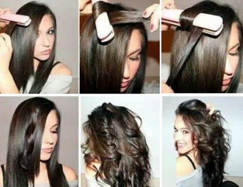 Lichtwellen können mit einem Bügeleisen oder Lockenstab erzeugt werden, aber vergessen Sie nicht den hochwertigen Wärmeschutz. Die Strähnen müssen vom Gesicht aus gewellt werden und Sie müssen vom Hinterkopf aus anfangen, sich zu kräuseln. Sie können jede resultierende Rolle mit unsichtbaren befestigen, dann am Ende alle Rollen abwickeln und Ihr Haar mit den Händen stylen. Die folgenden Fotos helfen Ihnen, perfekte Locken zu Hause zu machen.