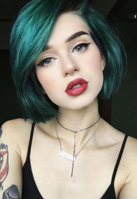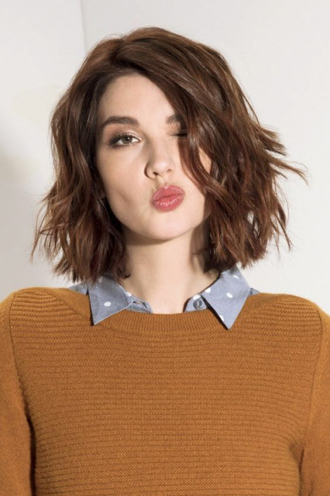 Stilvolles Bob-Caret verliert in dieser Saison nicht an Relevanz. Dieser Haarschnitt hat dank der außergewöhnlichen Kombination aus länglichen Strähnen vorne und stark gekürzten Haaren am Hinterkopf eine beispiellose Popularität erlangt. Ein Bob-Style Bob-Haarschnitt kann sowohl für kurzes als auch für mittleres Haar durchgeführt werden. Dieser Haarschnitt sieht in jedem Alter interessant und kokett aus.