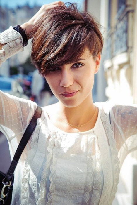 Langer Pony für kurzes Haar sieht mega cool aus. Bohne, Quadrat, garcon und viele andere Haarschnitte in Kombination mit verlängertem Pony können Ihr Image auffrischen, Schwung verleihen und darüber hinaus mehrere Jahre lang verjüngen, nur mit einem Haarschnitt.
