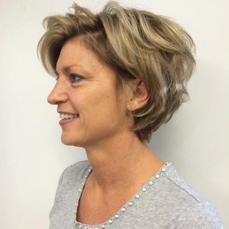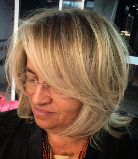 Abgestufte Haarschnitte oder eine Kaskade sehen bei Frauen über 50 sehr stylisch aus. Dieser Haarschnitt verleiht Ihrem Styling Volumen und Bewegung (Leichtigkeit).Ein solcher Haarschnitt wird in Schichten geschnitten, aber vermeiden Sie klare Schnittkonturen und präzise geometrische Linien und Formen, dann sieht der Haarschnitt schwer aus und Sie wirken älter.