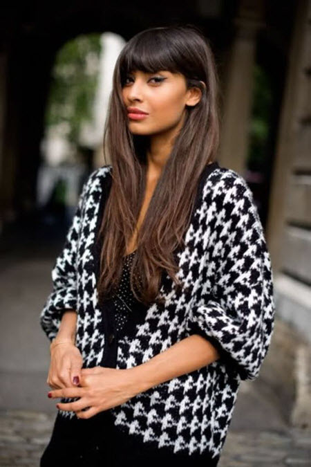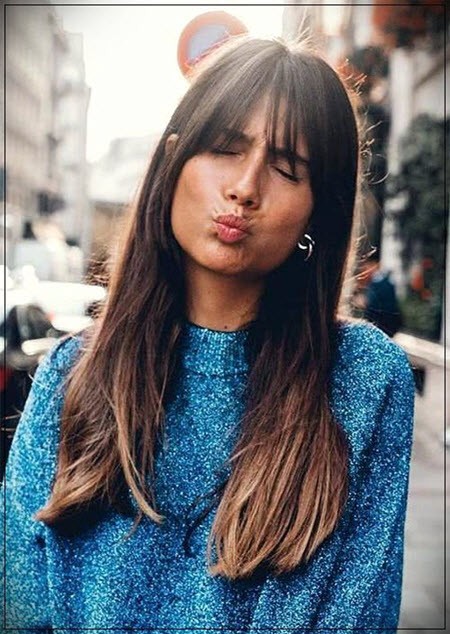 Pony eignet sich hervorragend für lange Haarschnitte, dieser Stil ist für alle Haartypen (außer lockig) geeignet, da er Ihrem Gesicht ein weiches und zartes Aussehen verleiht. Wenn Sie Ihre Augen betonen möchten, sollten Sie einen geraden Pony wählen, der Ihre Brauen bedeckt, oder einen längeren.