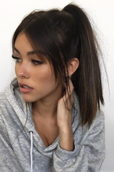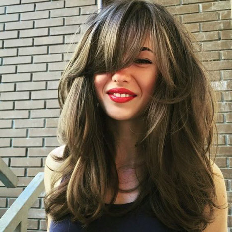 Viele Leute lieben länglichen Pony, und das ist nicht verwunderlich, denn diese Version von Pony mit langen Haaren ist eine unglaublich stilvolle und feminine Kombination. Geschichteter Pony kann dünnem Haar Volumen verleihen und den Look dadurch luftiger und romantischer machen. Darüber hinaus macht der längliche Pony das Gesicht optisch schmaler, wodurch es anmutig und dünn wird. Wenn Sie kleinere Probleme haben, wie zum Beispiel leichte Entzündungen oder Pickel, können Sie diese auch hinter einem Pony verstecken.