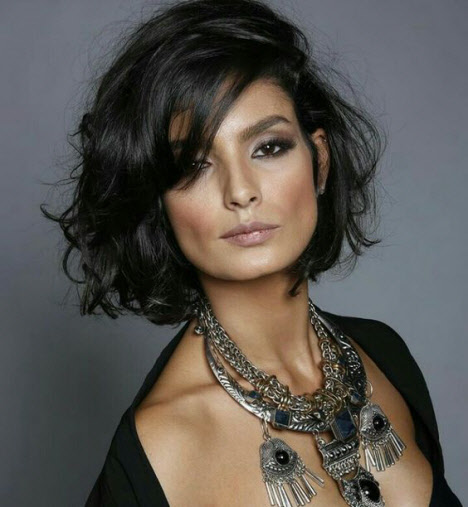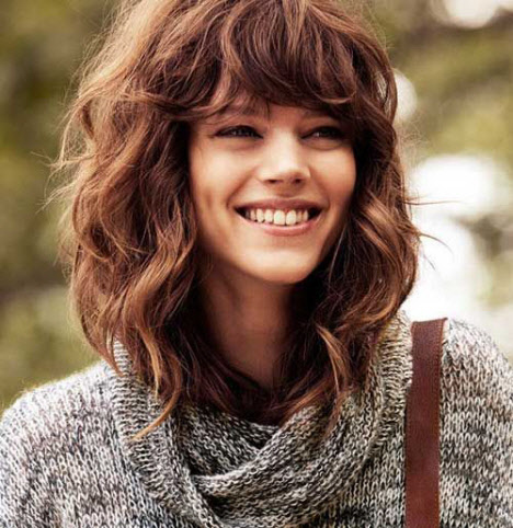 Schräger Pony. Diese Art von Knall ist für alle Haartypen und Gesichtsformen geeignet. Es sieht sowohl auf langen als auch auf kurzen Haaren harmonisch aus, mit solchen Pony können Sie fast jede Art von Gesicht korrigieren. Schräge Pony eignen sich auch für lockiges Haar, Sie müssen nur den am besten geeigneten Schnittwinkel und die am besten geeignete Ponylänge auswählen.