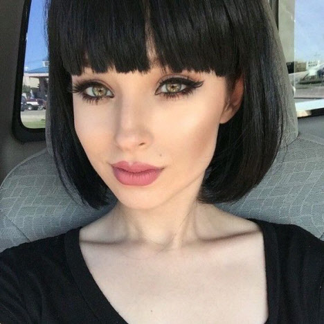 Kurzer Pony. Eine ziemlich mutige Entscheidung für Mädchen, kurzer Pony passt gut zu einem klassischen Quadrat. Diese Art von Pony sieht ungewöhnlich und extravagant aus, sodass die Aufmerksamkeit anderer nicht vermieden werden kann.