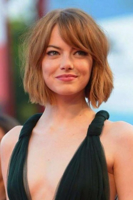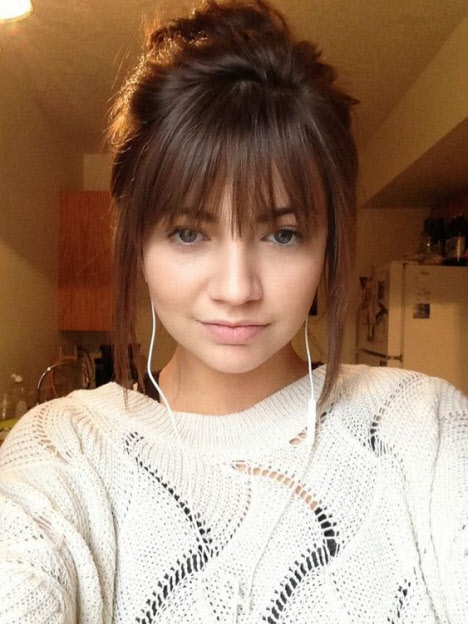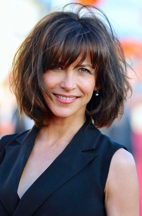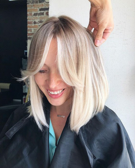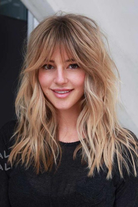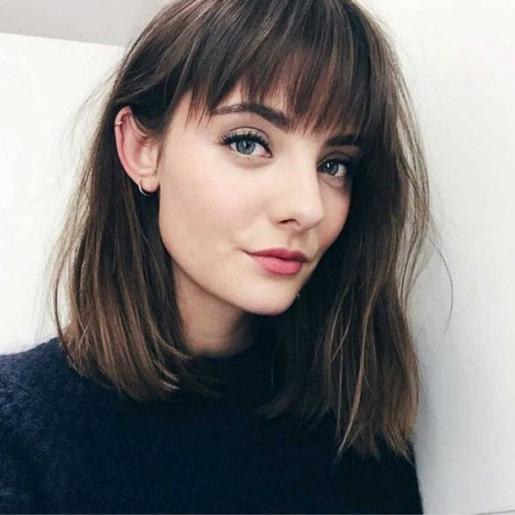 Alle Haarschnitte für mittellanges Haar werden perfekt mit geradem, länglichem Pony kombiniert.