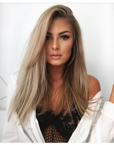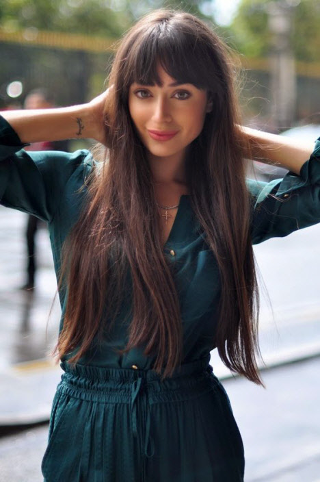 Gerader langer Pony in Kombination mit langen Haaren verleiht dem Bild Geheimnis und Romantik. Langes Haar erfordert besondere Pflege, also achten Sie unbedingt auf den Zustand und vergessen Sie nicht, einen Friseur aufzusuchen.