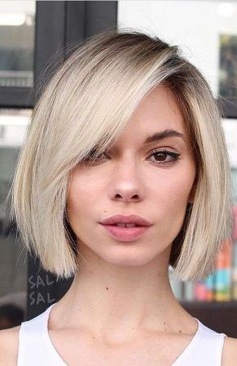 Bei der Auswahl eines geraden Knalls ist es wichtig, dass das Haar eine ausreichende Dicke hat, ansonsten passt es aber zu jeder Gesichtsform, Hauptsache, Sie wählen Ihre Knalllänge.