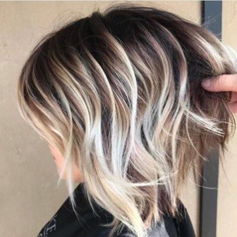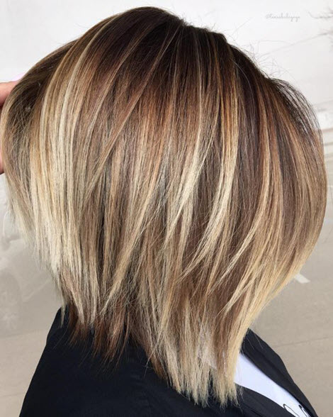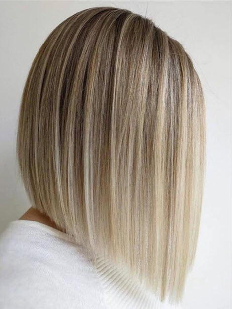 Die Balayage-Färbetechnik passt gut zu einem Bob oder einem länglichen Bob, bei diesen Haarschnitten sieht man das weiche Farbspiel und den Übergang von dunklem zu hellem Haar.