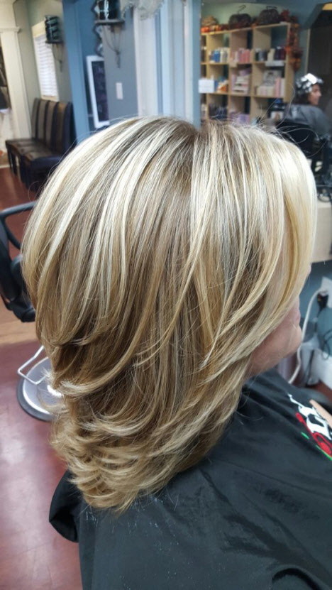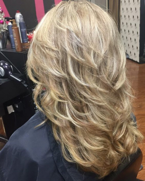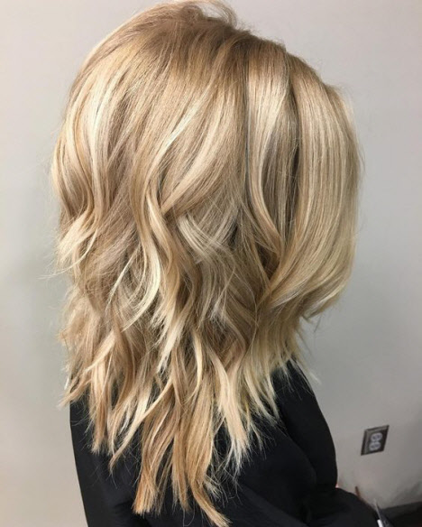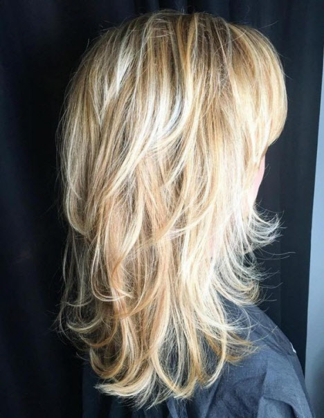 Auf dem Höhepunkt der Popularität bei Haarschnitten für mittleres Haar ist der Kaskadenhaarschnitt (mehrschichtig) führend.