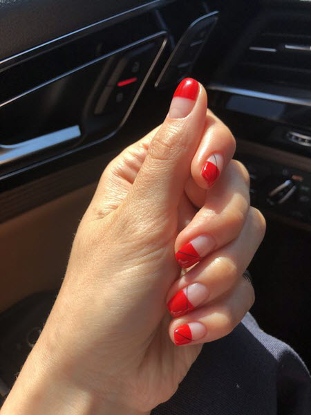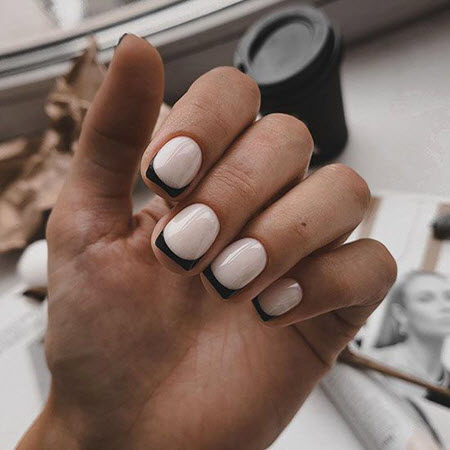 Die quadratische Form der Nägel gilt als die ästhetischste in Bezug auf die Geometrie, daher sehen alle geometrischen Arten des Nageldesigns auf der quadratischen Form der Nägel perfekt aus.