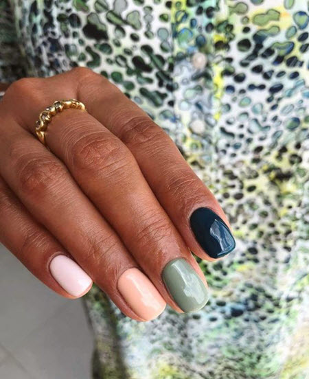 Ein einzigartiger und modischer Nagelstil, der jetzt viel Lärm macht, sind Tonvariationen, Farbverlauf oder mehrfarbige Maniküre, wie sie auch genannt wird. Dieses Nageldesign umfasst eine Auswahl einer Grundfarbe, beginnend mit dem Daumen.Der Farbton beginnt am dunkelsten und wird nach und nach heller, wenn jeder Nagel gefärbt wird. Alternativ können Sie für jeden Nagel unterschiedliche Pastelltöne wählen, die im Jahr 2024 relevant sind.