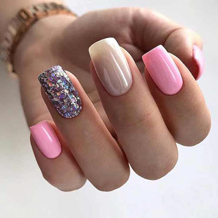 Glitzernder quadratischer Nagellack ist bei vielen Mädchen ein beliebtes Nageldesign. Es ist sehr süß und passt zu jeder Nagellackfarbe. Von pastellfarbenen Nude-Tönen bis hin zu kräftigen und kräftigen Paletten passen glänzende Nägel zu allem. Es kann an jedem Finger Ihrer Wahl sein, aber die meisten Frauen wählen den Ringfinger.
