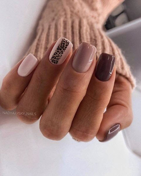 Auf dem Foto unten eine Auswahl aktueller Neuheiten im Design der Maniküre mit Animal-Print 2024 für eckige Nägel: