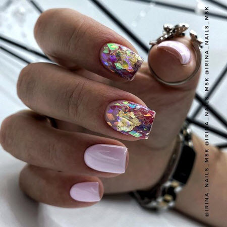 Die quadratische Form der Nägel eignet sich hervorragend für die Maniküre mit Steinen und Strasssteinen. Nageldesign mit Kieselsteinen kann kein Mädchen gleichgültig lassen. Manchmal ist weniger mehr, aber besser, das gilt sicherlich für dieses schicke Nageldesign, legen Sie keine Steine auf alle Ihre Nägel, es ist besser, sich auf einen oder zwei Nägel zu konzentrieren.