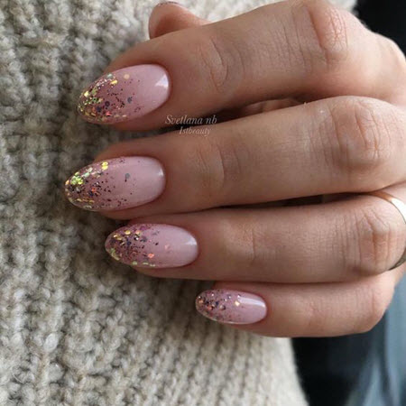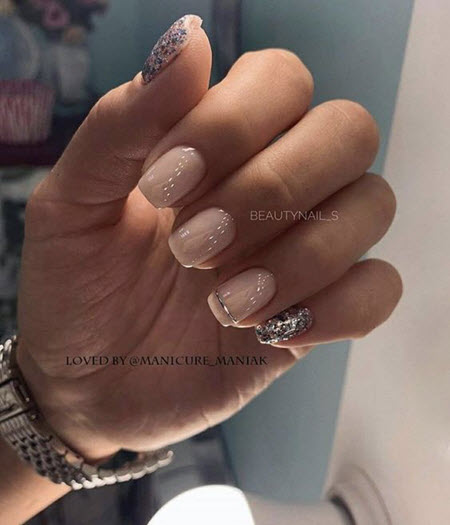 Nude Maniküre 2024 wird sehr harmonisch mit Funkeln kombiniert. In diesem Jahr können Sie aus einer Vielzahl von Glitzeroptionen wählen, und Silber und Gold sind Klassiker, die immer relevant sind.
