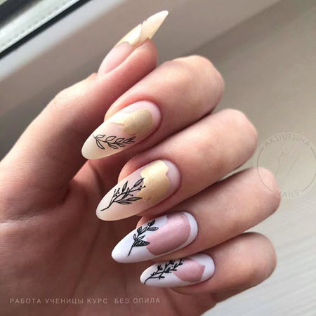 Die modische Nude-Maniküre 2024 in hellen Farben und Untertönen wird in einer schönen Version des Dekorierens von mandelförmigen Nägeln verkörpert. Mittellange Mandelnägel sind perfekt für nackte Maniküre-Designs. Blumen, Blätter, Punkte, Streifen, Linien, Herzen ... Es gibt viele Details und Muster, mit denen Sie Ihre Mandelnägel verzieren können.