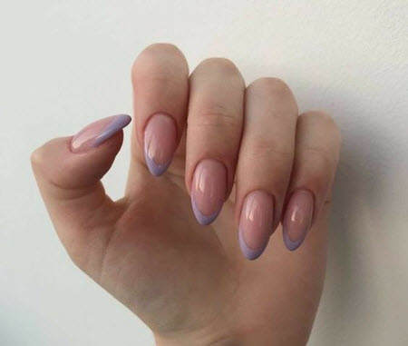 Das nackte Nageldesign, das in der Verlaufstechnik hergestellt wird, wenn eine Farbe des Lacks sanft in eine andere übergeht, sieht ungewöhnlich und sehr schön aus.