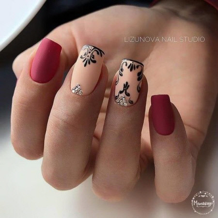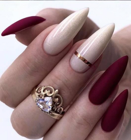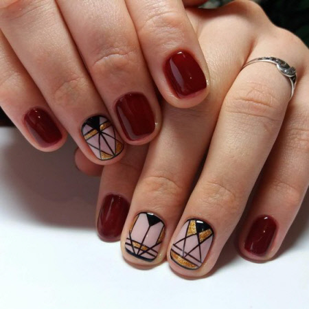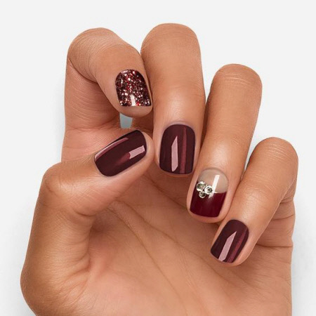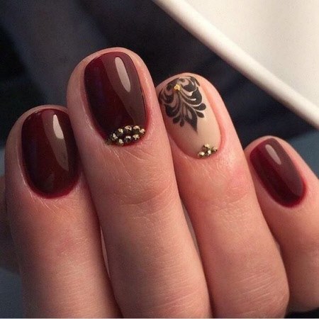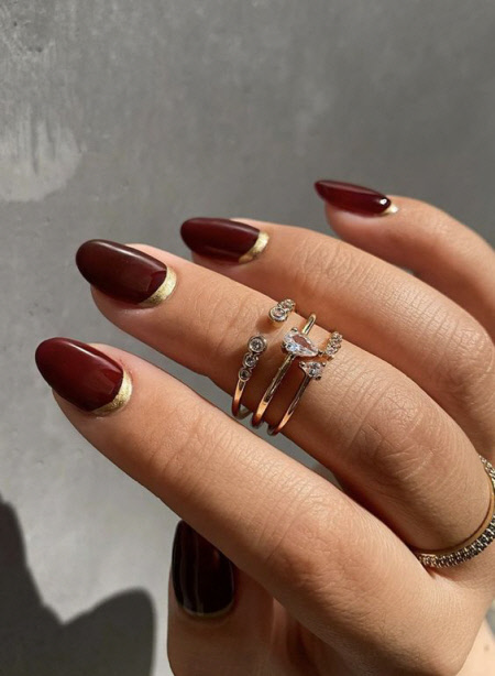 Es gibt viele Nageldesigns, die zur Burgunderfarbe passen und ihr volles Potenzial entfalten.
