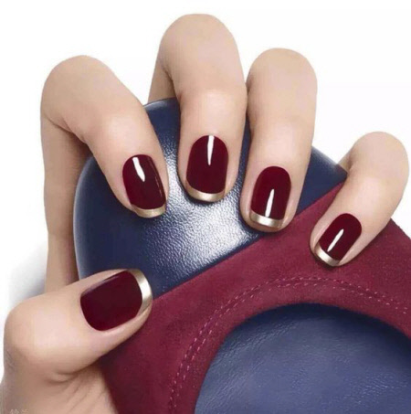 Burgunder-Töne mit Goldzusatz stehen gleichermaßen für Luxus und Adel. Eine der von uns angebotenen Gestaltungsmöglichkeiten macht Ihre Nägel einfach wunderschön.