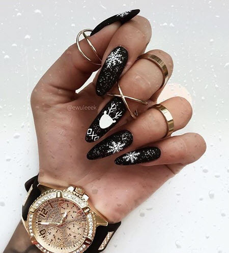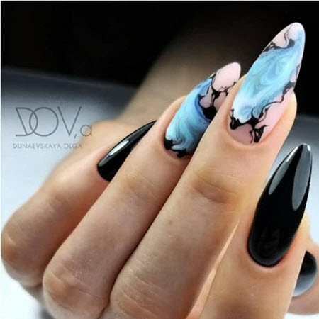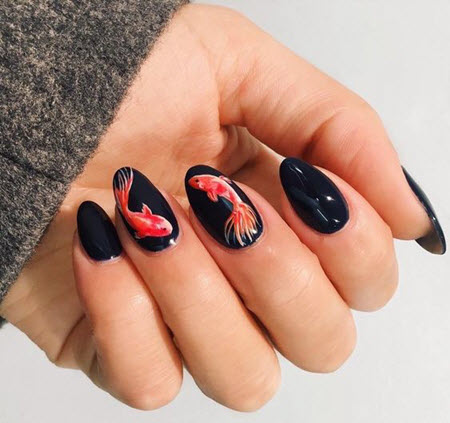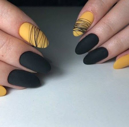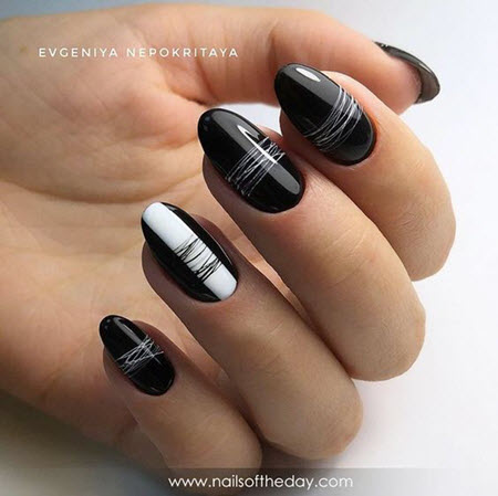 Schwarze Nägel sehen auf Nägeln jeder Länge und Form gut aus, was einer der Gründe ist, warum die schwarze Maniküre seit vielen Jahren als eines der stilvollsten und modischsten Nailart-Designs gilt. Am deutlichsten können Sie die Gestaltung von Nägeln mit Hilfe von Zeichnungen ausdrücken, denn Schwarz eignet sich nicht nur als Hintergrund für eine Zeichnung, sondern auch in Form der Zeichnung selbst mit schwarzem Lack.