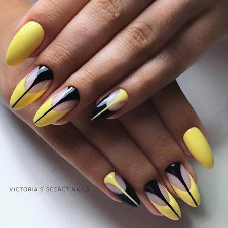 Die schwarze Farbe des Lacks passt perfekt zu Weiß, Rot, Gold und Silber. Pastellfarben passen auch gut zu schwarzem Lack. Wenn Sie helle Farben lieben, wird eine Kombination aus Gelb, Grün, Pink, Orange mit schwarzer Politur im Jahr 2024 gut aussehen.