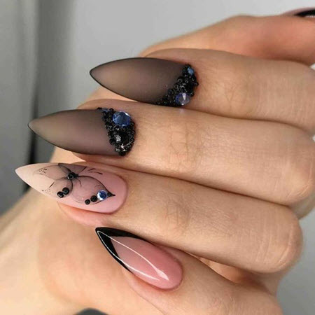 Steine und Strasssteine sind ein ziemlich launisches Material für die Maniküre, aber mit ihnen wird Ihre Maniküre fantastisch aussehen. Mit Hilfe von Steinen und Strasssteinen können Sie Akzentnägel elegant verzieren oder damit die fertige Zeichnung einer schwarzen Maniküre betonen.