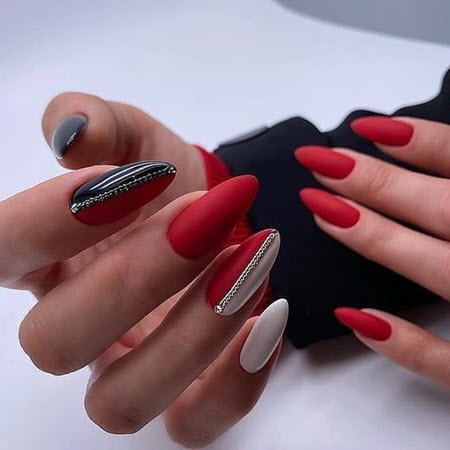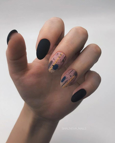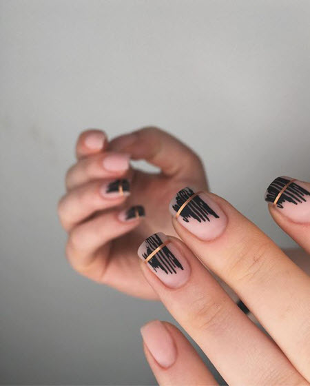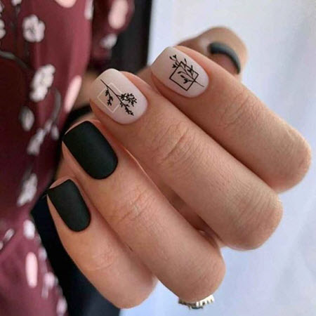 Schwarz gilt als vielseitig und agiert elegant als Duo mit einer Beschichtung in jedem Farbton. Die Maniküre Herbst 2024 in schwarzen Farben kann mit Beige, Rot, Weiß und vielen anderen kombiniert werden.