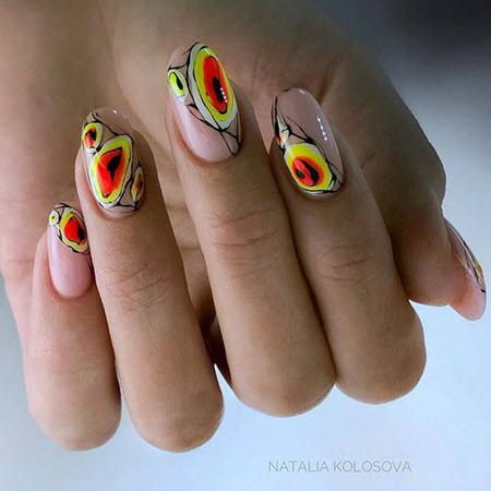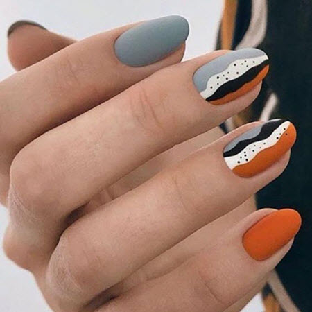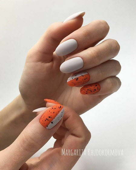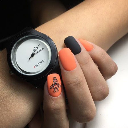 Stilvolle orange Herbstmaniküre: neues Foto 2024