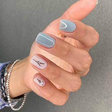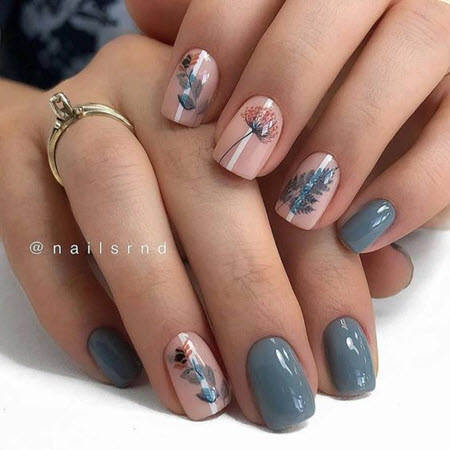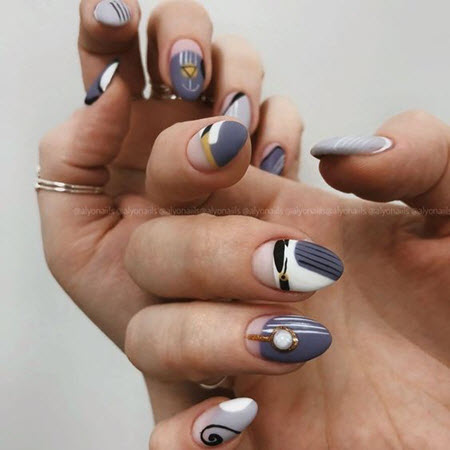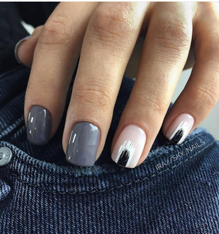 Die graue Grundfarbe ergänzt wunderbar die skurrilen Noten von Pink, Lila und Fuchsia. Mit grauen Lacktönen können Sie sowohl für kurze als auch für lange Nägel ein sehr schönes Design erstellen.
