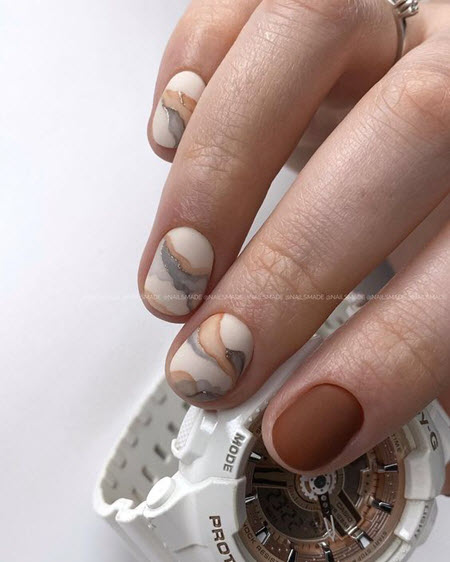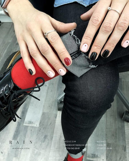 Beige ist mit Schwarz, Rot, Weiß, Smaragd, Blau und Braun befreundet. Pink - mit olivfarbenen, grauen, türkisfarbenen und klassischen Optionen. Diese beiden Farbtöne werden die Top-Farben in der Nude-Nagellack-Palette im Herbst 2024 sein.