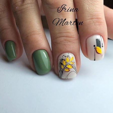 In jeder Herbstsaison bieten uns Lackhersteller mehrere Grüntöne an, da sie in jedes Herbstmaniküre-Design passen.
