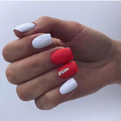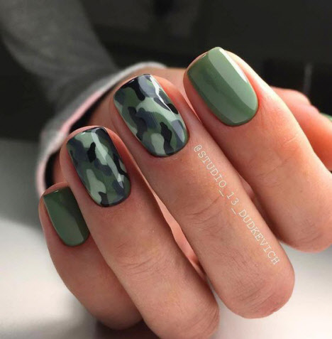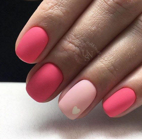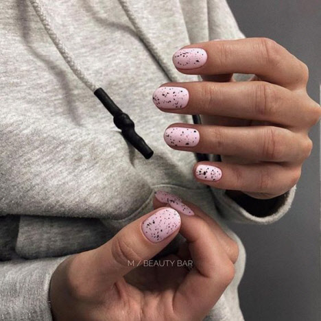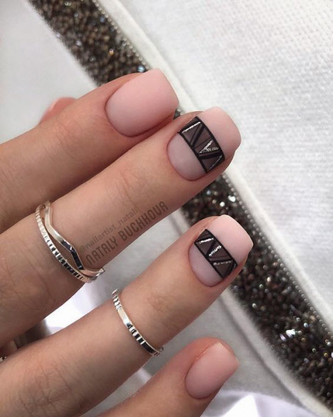 Matte Maniküre sieht auf kurzen Nägeln sehr beeindruckend und stilvoll aus, unabhängig davon, für welches Design Sie sich entscheiden und in welchen Farbtönen. Matte Maniküre sieht gut aus mit hellen Gelpolituren und mit Nude-Pastellfarben sowie dunklen.Der einzige Nachteil einer matten Basis ist, dass sie nicht so lange hält wie eine glänzende, sie verblasst schneller, aber bei einer so spektakulären Maniküre bleiben Ihre Nägel nicht unbemerkt.