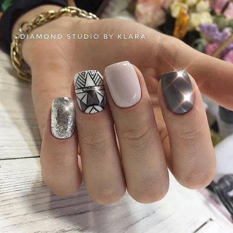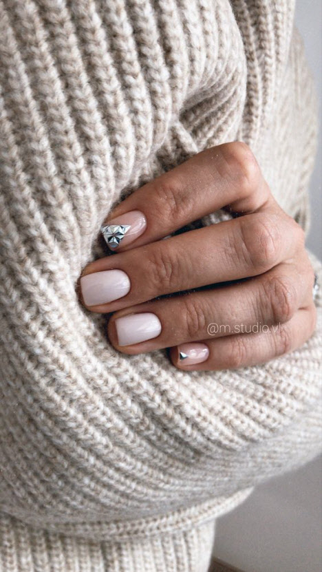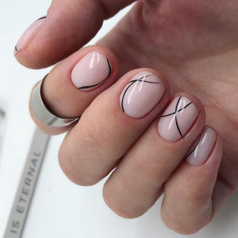 Negativraum-Maniküre für kurze Nägel: neues Foto 2024