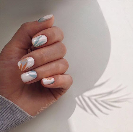 Ein heller abstrakter Dunst auf einer weißen Gelpoliturbasis wird die perfekte Lösung für eine Sommermaniküre im Jahr 2024 sein.
