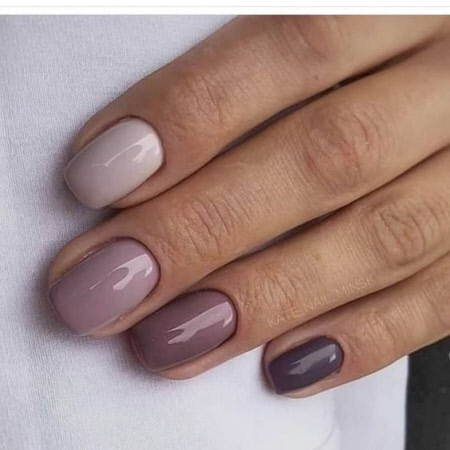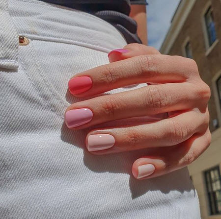 Mehrfarbige Maniküre in einem Farbschema ist immer noch beliebt und sieht 2024 sowohl auf kurzen als auch auf langen Nägeln gut aus. Gellack ermöglicht es Ihnen, mit diesem Nageldesign bis zu drei Wochen lang zu gehen.