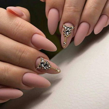 Spektakuläre mattschwarze Maniküre mit Reibungselementen in Form eines Akzents lässt Ihre Hände zum Mittelpunkt Ihres gesamten Looks werden.