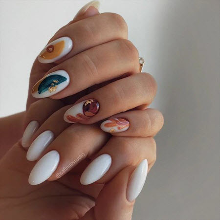 Auch die Schaummaniküre wird in dieser Saison im Trend liegen, sie sieht auf langen mandelförmigen Nägeln sehr beeindruckend und stylisch aus.
