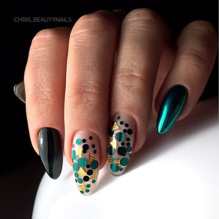 Pailletten in der Maniküre haben seit mehreren Jahren nicht an Relevanz verloren, sie sind das ganze Jahr über relevant, dies ist das beliebteste Material für Nägel. Pailletten können verschiedene Arten, Farben und Größen haben, aber die beliebtesten sind goldene und silberne Pailletten (Glitzer).