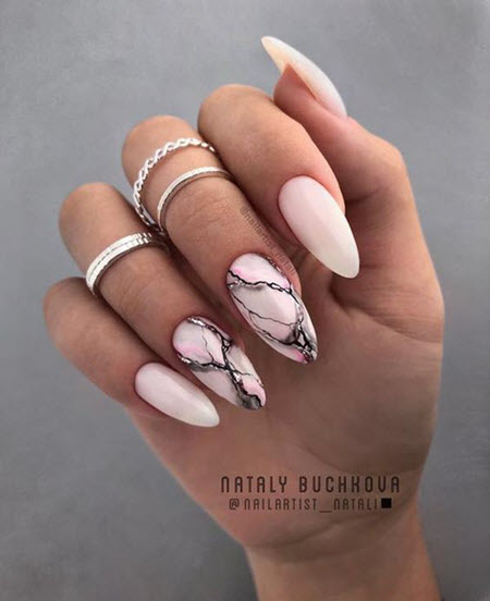 Schöne Marmormaniküre für Mandelnägel 2024