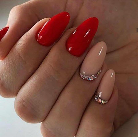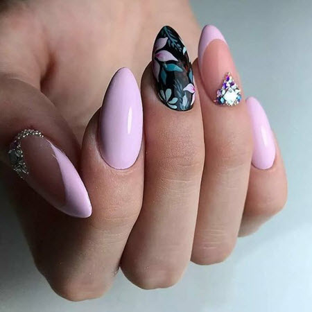 Auf den mandelförmigen Nägeln sieht eine Maniküre mit Steinen wunderschön und sehr beeindruckend aus. Nageldesign mit Steinen ist immer eine Win-Win-Maniküre, die jedem gefallen wird.