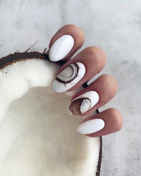 Für Liebhaber der hellen Maniküre bietet die Nailart-Saison 2024 auch viele trendige und stylische Nageldesigns in Mandelform. Bei einer solchen Maniküre stehen Ihre Hände immer im Rampenlicht, sehen Sie sich das Foto für die schönsten Ideen an: