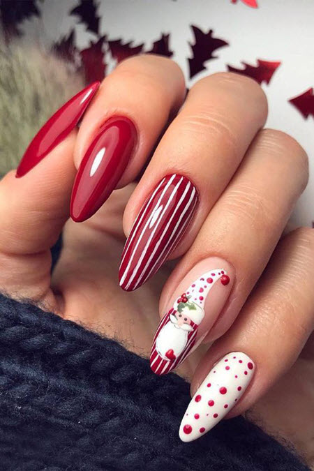 Die Mandelform der Nägel verleiht jeder Fingerform ein feminines und sehr schönes Aussehen, wodurch die Arme dünner und länger wirken. Daher sieht eine Jacke auf Mandelnägeln erstaunlich schön aus. Versuchen Sie im Jahr 2024, den weißen Streifen der Jacke durch eine andere Farbe zu ersetzen, zum Beispiel schwarz, rot, blau, gelb, um Ihre French Manicure ein wenig aufzufrischen und heller zu machen.