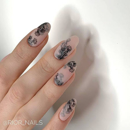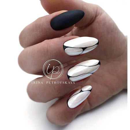 Maniküre mit Muster auf Mandelnägeln 2024