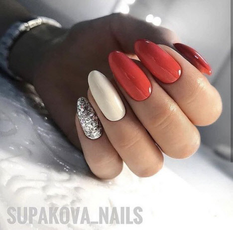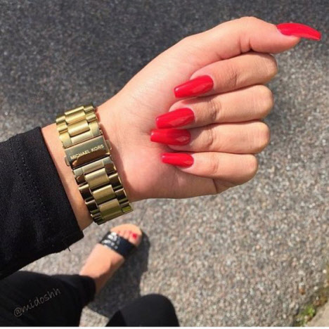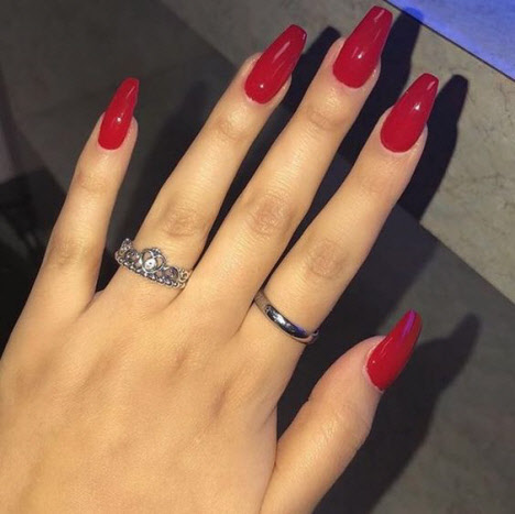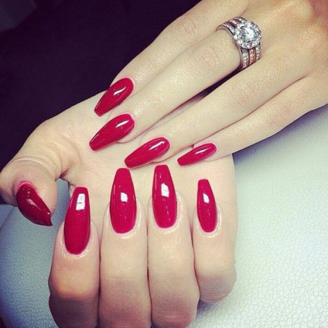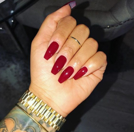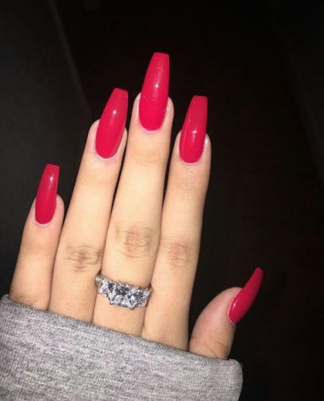 Die meisten Mädchen, die nicht wissen, welche Lackfarbe sie wählen sollen, wählen meistens Rot. Rote Maniküre verleiht jedem Ihrer Outfits Schwung.