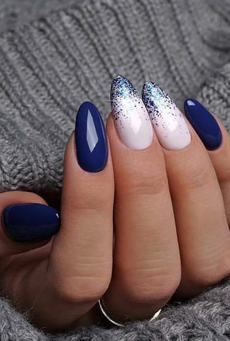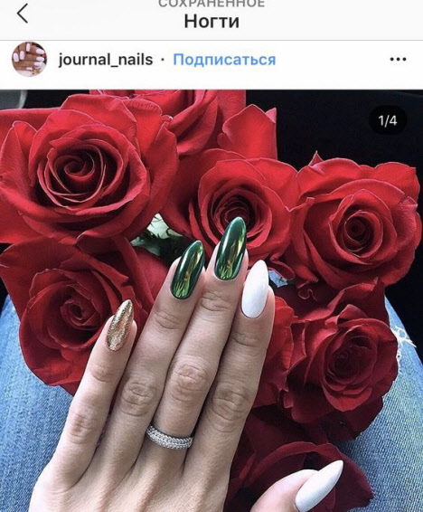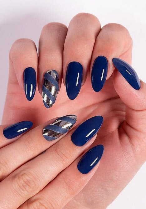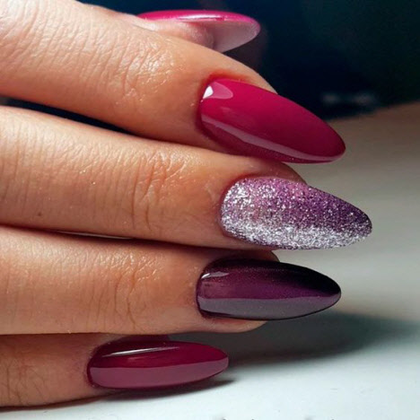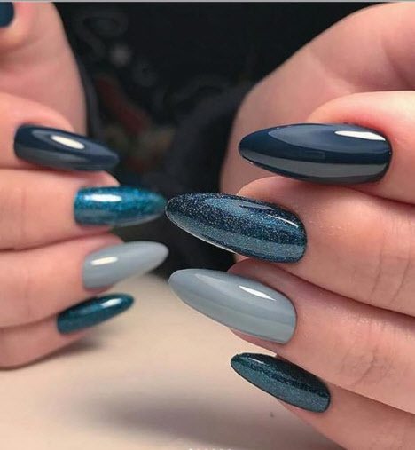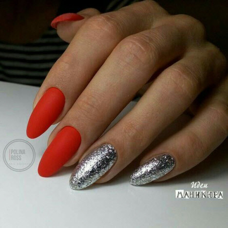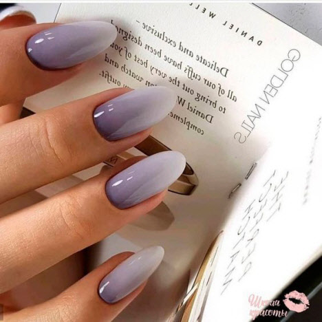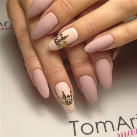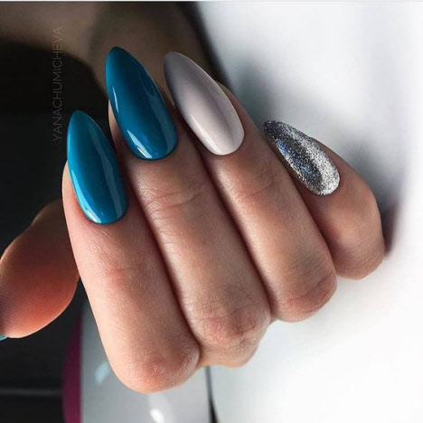 Heute ist die Mandelform der Nägel am gefragtesten und wird vom schönen Geschlecht am häufigsten gewählt. Die Mandelform der Nägel ist an der Basis ein ovaler Nagel und am Ende etwas spitzer, ähnlich einer Mandelnuss. Mit dieser Nagelform können Sie Maniküre sowohl in hellen als auch in dunklen Farben durchführen und mit Mustern und Glitzern wird Ihre Maniküre fantastisch aussehen, egal ob in glänzend oder matt.