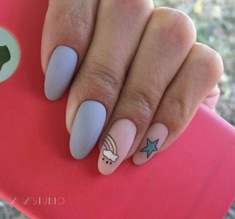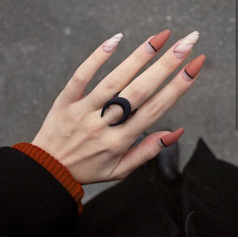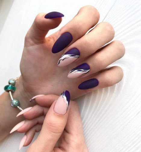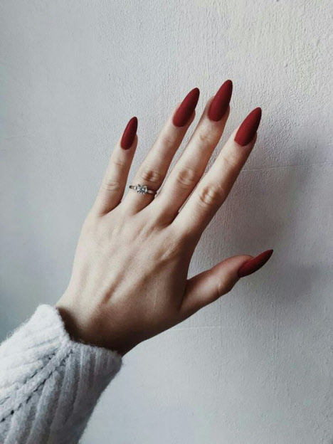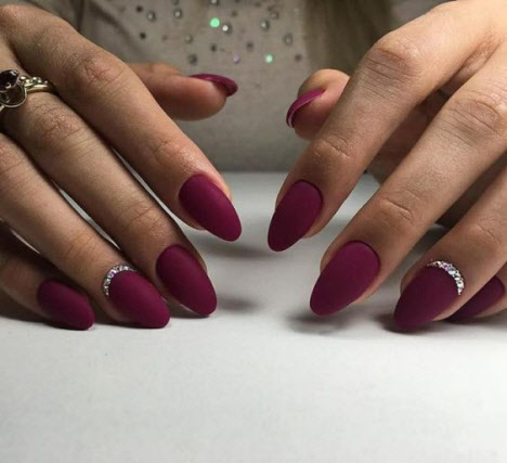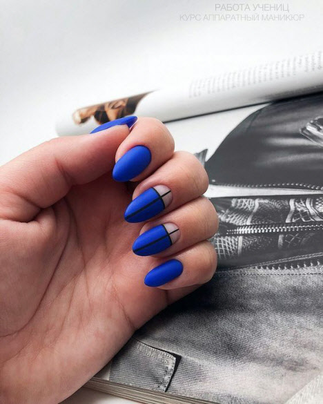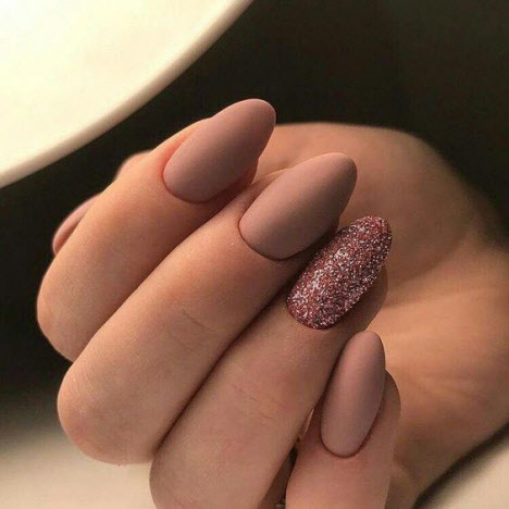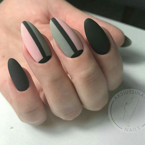 Ein mattes Finish in jedem Farbton macht die Maniküre ungewöhnlich und stilvoll. Matte Maniküre kombiniert mit Minimalismus und Geometrie sieht sehr modisch und schön aus. Eine matte Maniküre mit Kieselsteinen und Funkeln wird jede Fashionista beeindrucken.